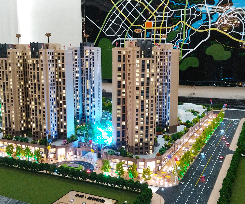 模型采用ABS等材料經(jīng)過CAD畫圖手工拼接、上色等制作工藝完成、并在模型內(nèi)部輔助LED燈光達(dá)到客戶展示要求