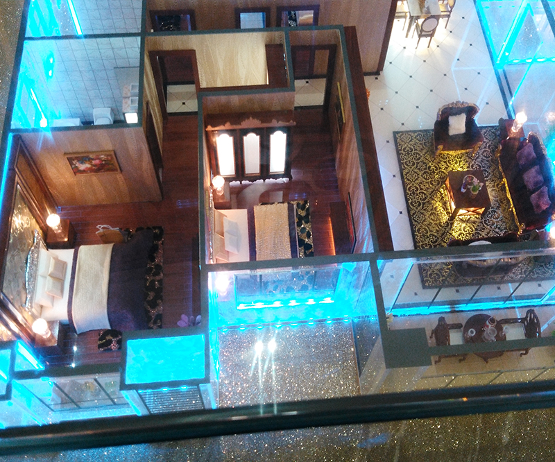 采用透明亞克力制作、內(nèi)部按比例制作家私布局、達(dá)到真實(shí)仿真效果。