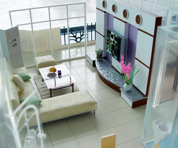 采用透明亞克力制作、內(nèi)部按比例制作家私布局、達(dá)到真實(shí)仿真效果。