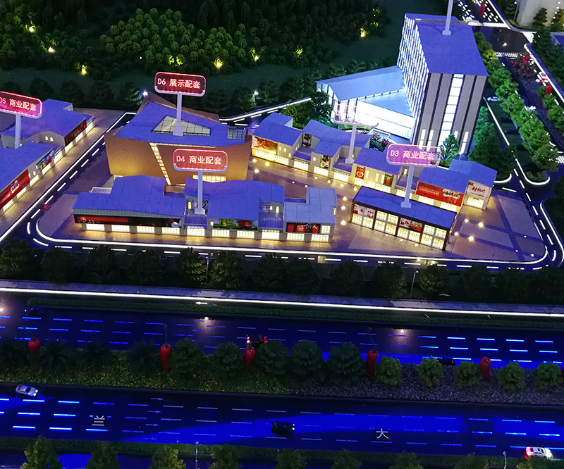 模型采用ABS等材料經(jīng)過CAD畫圖手工拼接、上色等制作工藝完成、并在模型內(nèi)部輔助LED燈光達(dá)到客戶展示要求