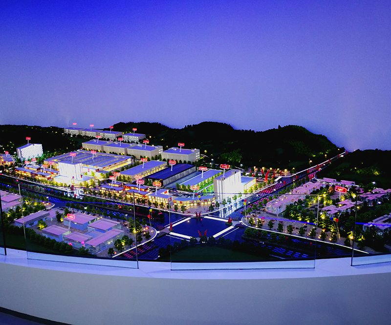 模型采用ABS等材料經(jīng)過CAD畫圖手工拼接、上色等制作工藝完成、并在模型內(nèi)部輔助LED燈光達(dá)到客戶展示要求
